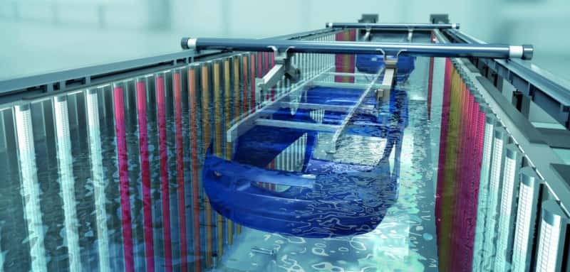 杜尔还为FMC拜腾的新涂装车间提供用于预处理和电泳涂装的 RoDip 旋转浸涂工艺- 已具备60 台/小时的处理量,同时配备所有用于密封和喷漆工艺的机械臂和应用技术。电泳涂装采用了节能和自动防故障系统EcoDC MACS。该技术采用其特有的模块化阳极控制,能在电泳槽内随车身的移动而形成电压分布。喷漆室的机械臂配备了最新一代 EcoBell 3 雾化器。半自动的 EcoDryX 干式分离系统可分离喷漆室中过量喷涂的底漆和面漆,并且完全不需要使用水或化学品。这种简单而强大的技术得益于杜尔采用的过滤纸板。